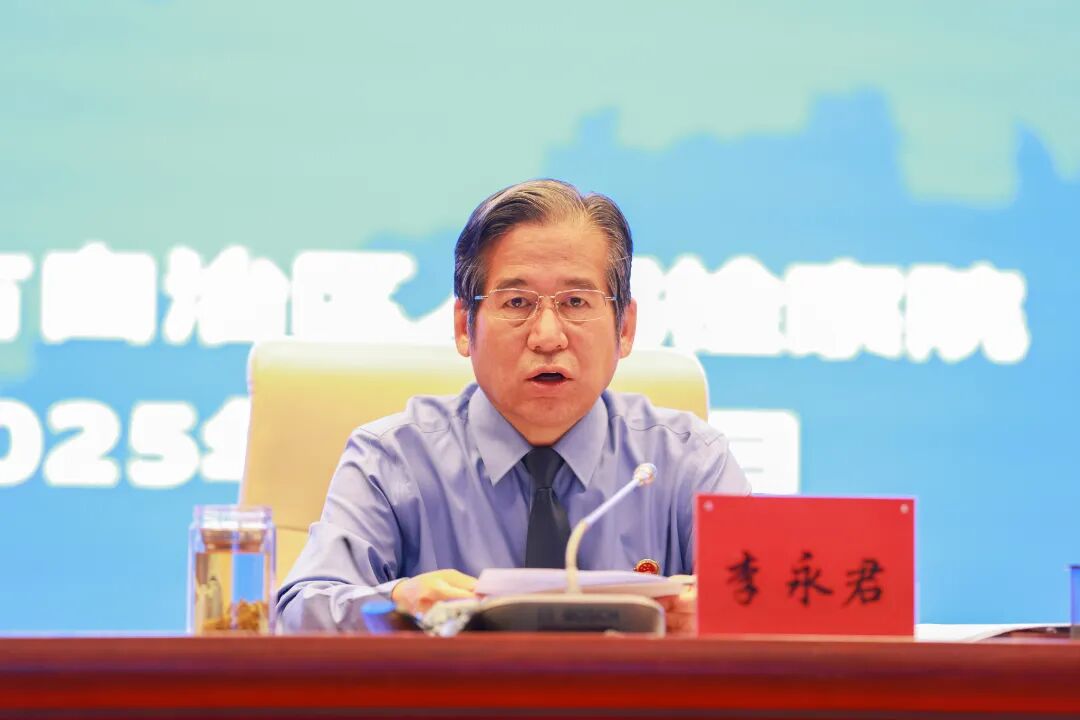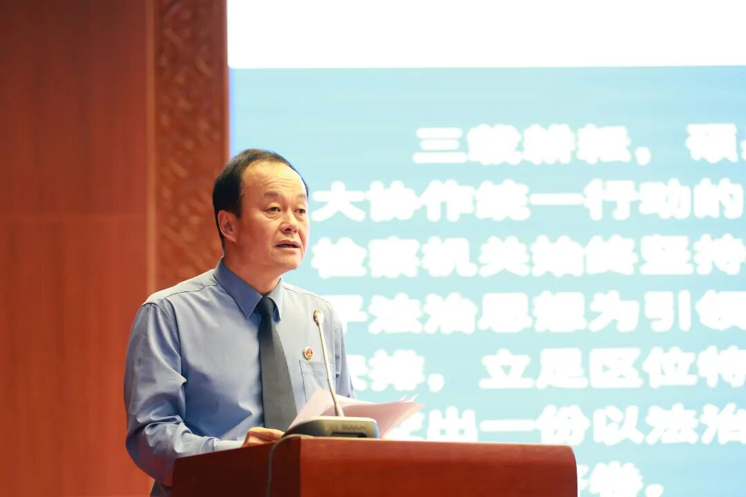 李永君指出,要坚定不移持续深化推进生态环境检察工作,坚决扛起筑牢我国北疆生态安全屏障的政治任务,提出“五个进一步”的工作要求:一是扛牢生态保护的政治责任。深刻领会重要思想,紧密结合北疆实际,以高度的责任感和使命感,高质效办好每一个案件,着力解决2400多万北疆儿女身边的突出生态环境问题,让人民群众生活更美好。二是发挥“四大检察”的共振作用。刑事检察要突出一个“严”字,民事检察要突出一个“息”字,行政检察要突出一个“罚”字,公益诉讼检察要突出一个“诉”字,“四大检察”整体上要突出一个“融”字。三是推动“三大协作”的并行优势。要以“三北”工程为重点,持续推进山林保护协作统一行动;以水资源保护为重点,持续推动河湖保护协作统一行动;以荒漠化防治为重点,持续推动草原保护协作统一行动。四是凝聚更实更强的保护合力。要持续强化跨区域检察协作,深化执法司法协作,优化社会协作,只有从全局出发形成合力,携手各方打好“组合拳”,才能实现生态环境的全面有效保护。五是提升高质效履职的能力水平。生态环境检察工作涉及面广、专业性强,检察队伍素质能力提出更高要求,要提升检察人员政治素养,更新司法办案理念,建强专业化队伍,用好大数据科技手段,拓展监督渠道,创新监督方法,努力办好每一个案件。