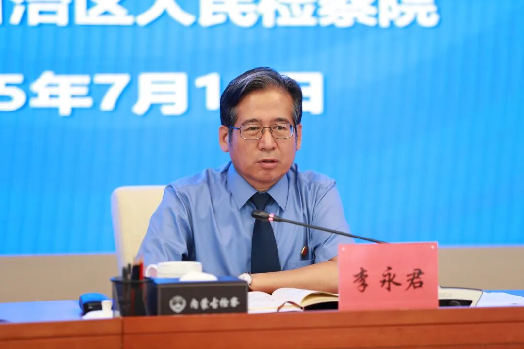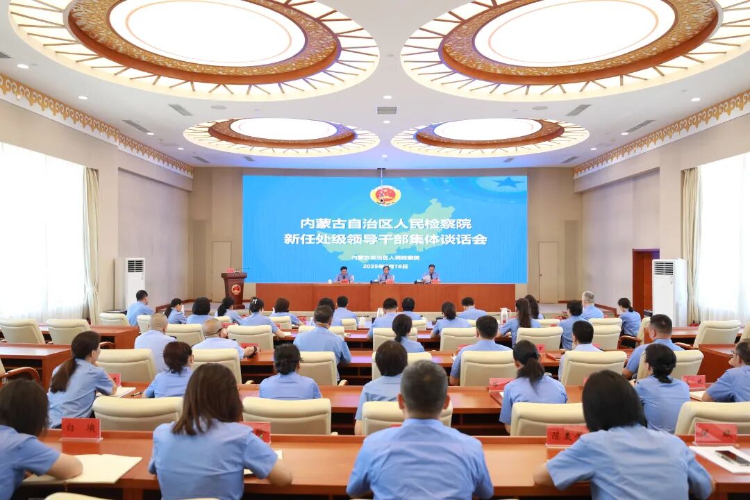 7月16日上午,自治区检察院召开新任职干部集体谈话会,自治区检察院党组书记、检察长李永君对新任职干部提出要求,自治区检察院党组成员、驻院纪检监察组组长杨一平作廉政谈话,自治区检察院党组成员、政治部主任安耀彬宣读任职决定。