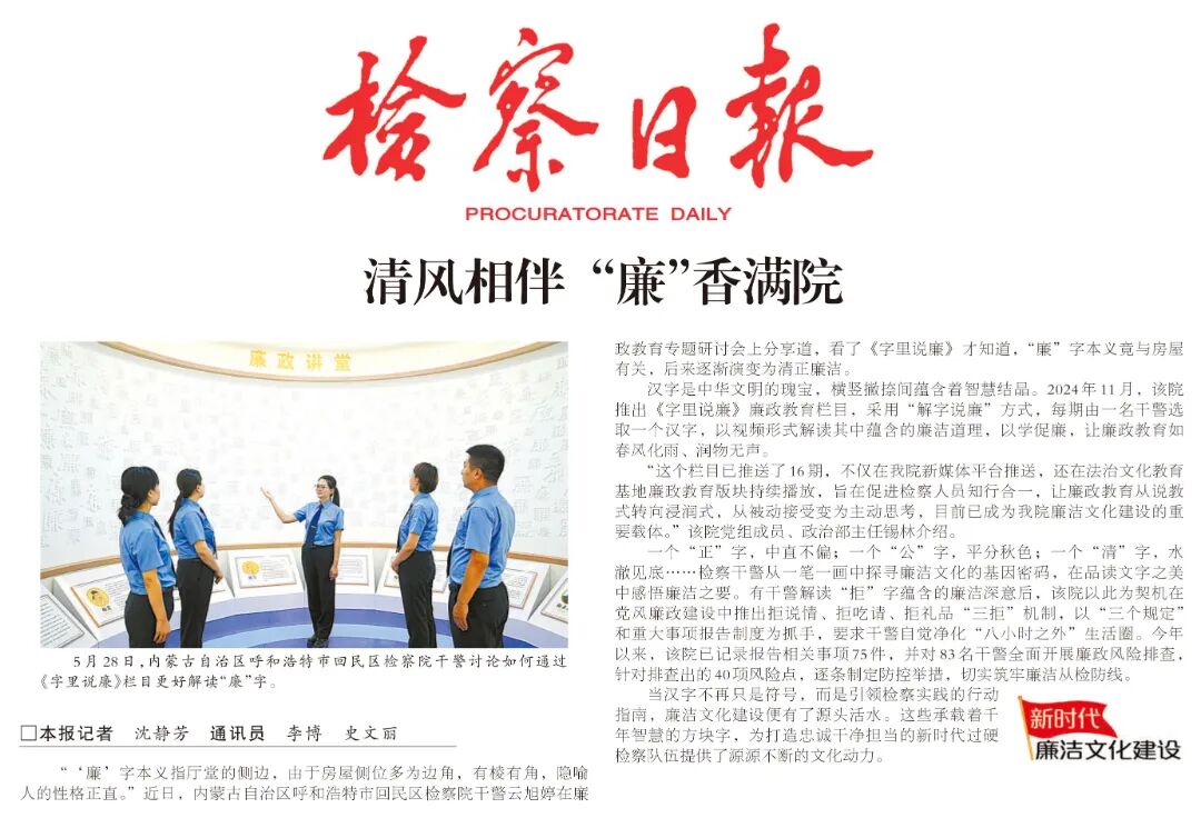 当汉字不再只是符号,而是引领检察实践的行动指南,廉洁文化建设便有了源头活水。这些承载着千年智慧的方块字,为打造忠诚干净担当的新时代过硬检察队伍提供了源源不断的文化动力。