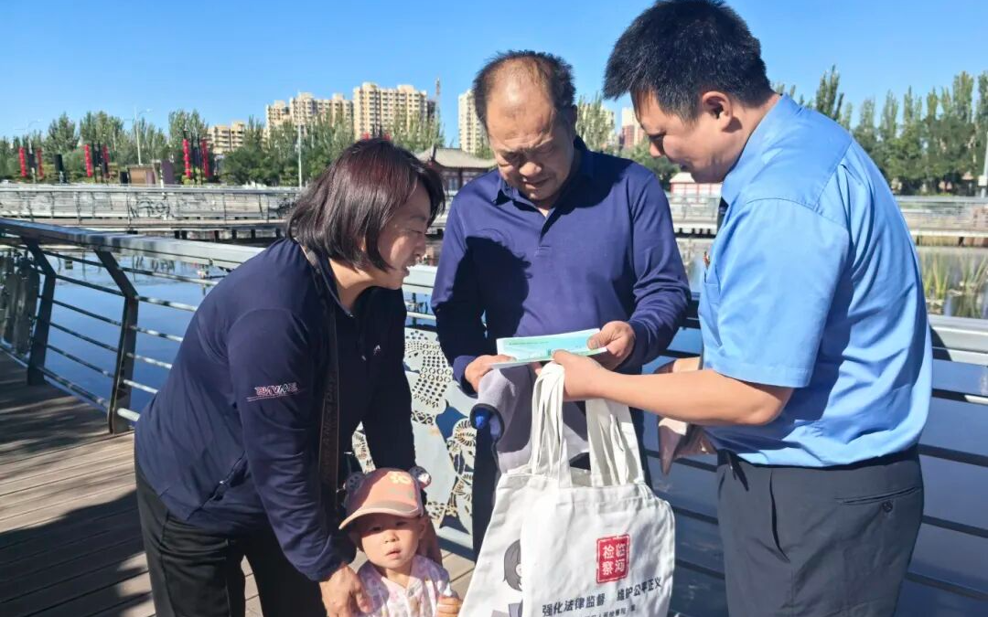 近日,巴彦淖尔市临河区检察院在黄河湾步行街以“加强全面质量管理 促进质量强国建设”为主题,开展了形式多样、内容丰富的宣传活动。临河区团委联合检察院青年检察人员组成“质量先锋”志愿服务队,通过“法律宣讲+案例互动”模式,将质量安全普法与青年志愿服务深度融合,推动业务职能与社会共治同频共振。