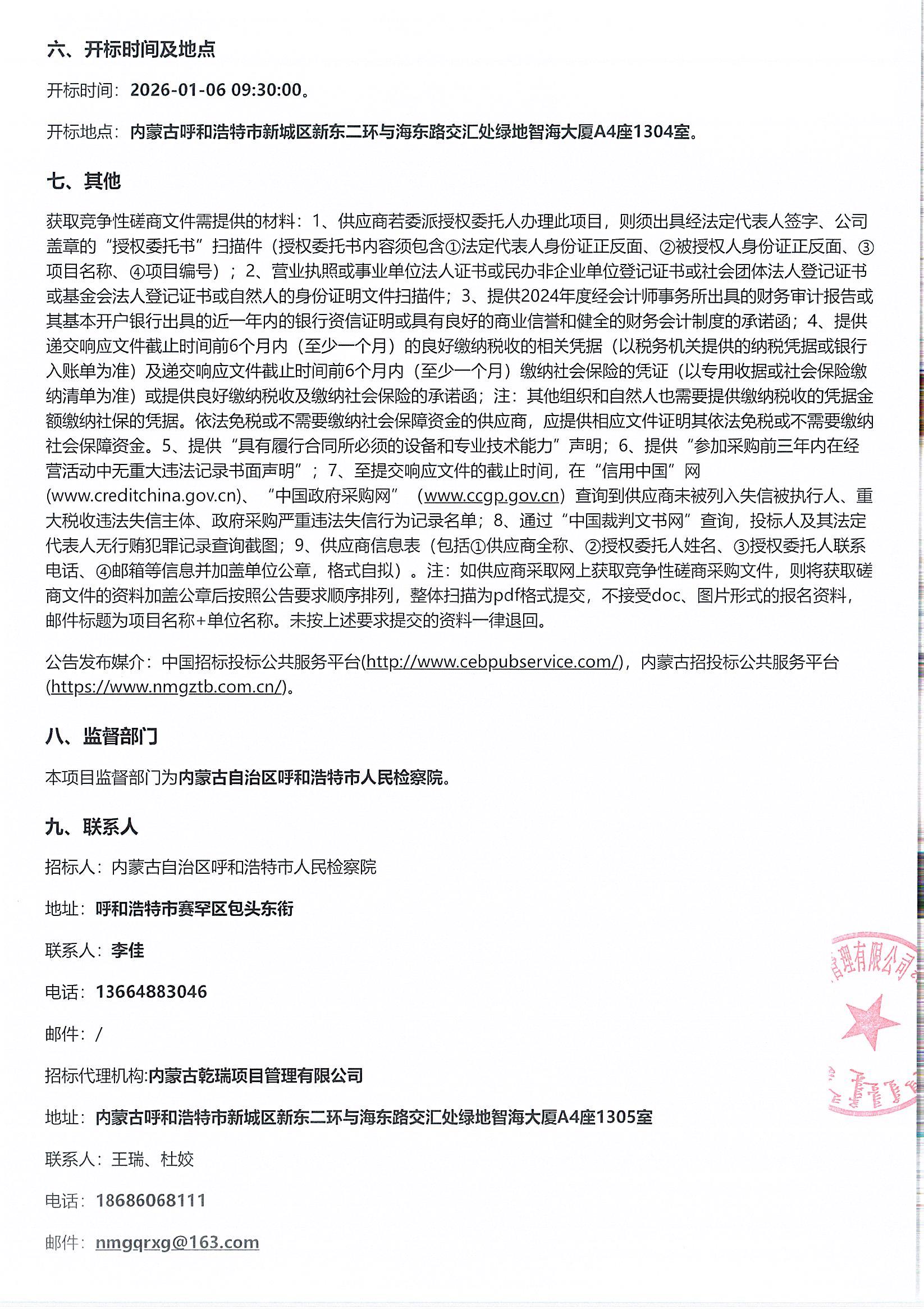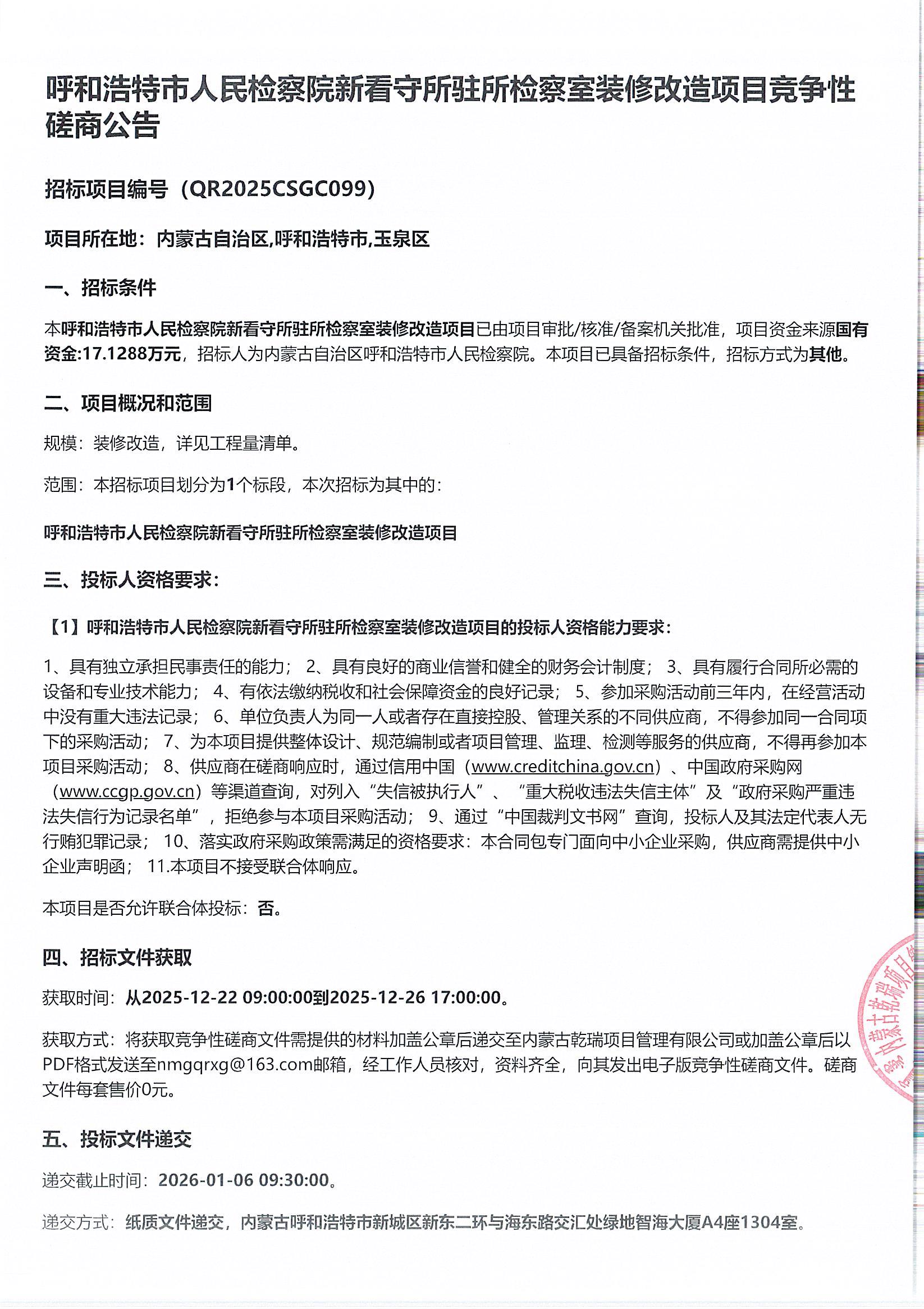 呼和浩特市人民检察院新看守所驻所检察室装修改造项目竞争性磋商公告