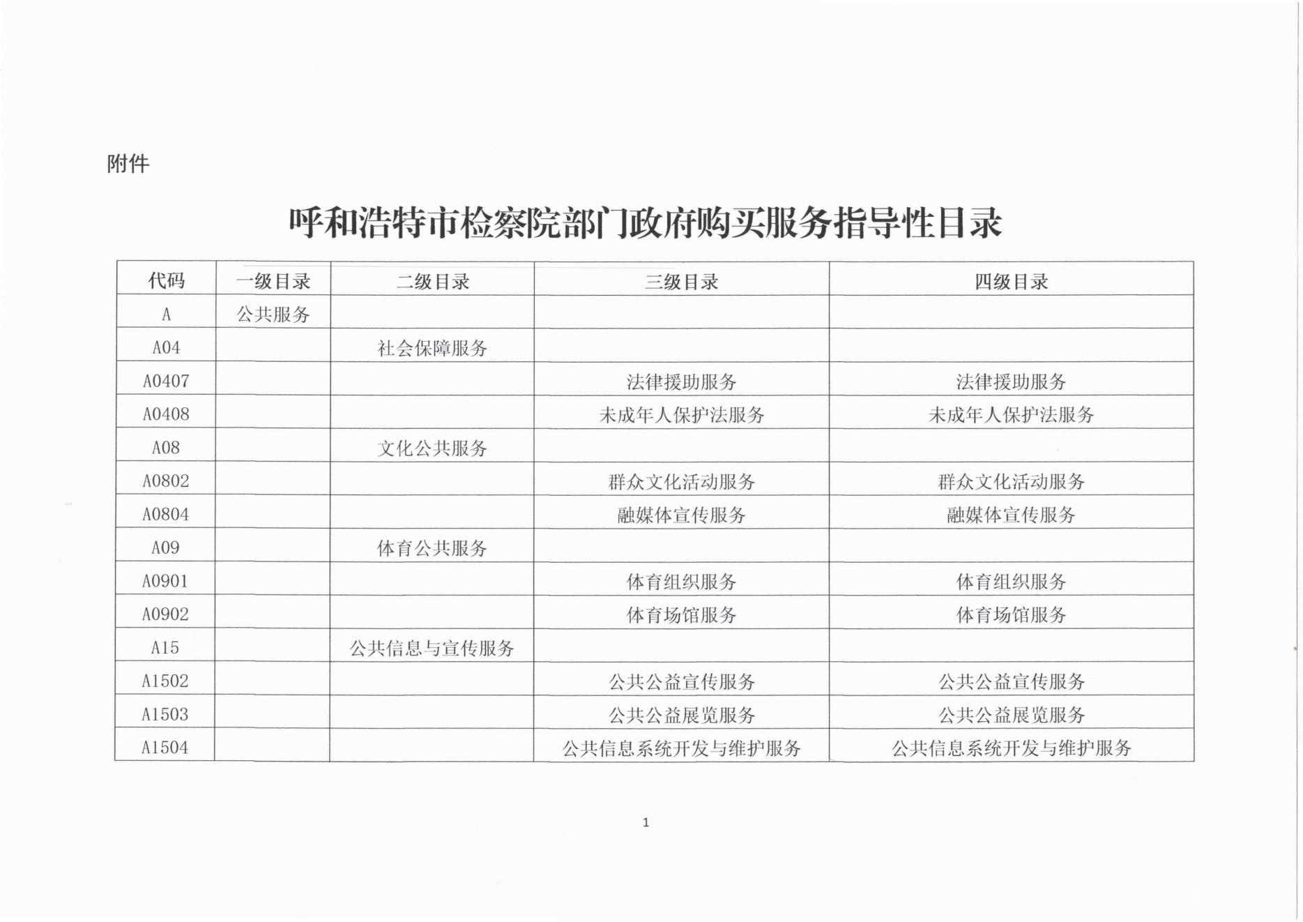 呼和浩特市检察院部门政府购买服务指导性目录