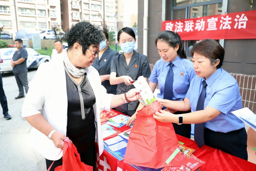 8月22日,玉泉区人民检察院走进水语社区开展“政法联动宣法治,法治护航促和谐”主题宣传活动,检察人员立足检察职能,通过悬挂横幅、发放宣传页、提供法律咨询等方式,向群众讲解《人民调解法》《信访工作条例》《民法典》等相关法律规定。